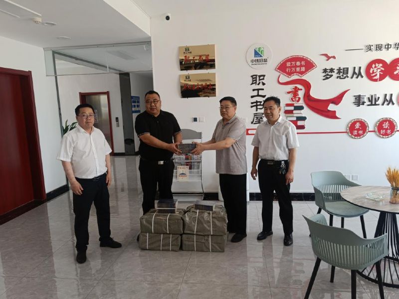 中鐵滄鹽書屋在市級職工書屋示范點(diǎn)建設(shè)工作中表現(xiàn)突出,喜獲滄州市總工會贈書殊榮。近日,工會主席李金營帶隊(duì)到中鐵滄鹽有限公司,親自將贈書轉(zhuǎn)交至中鐵滄鹽公司。