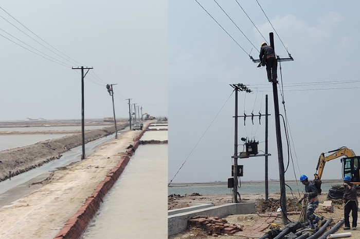 春扒將至,為了保障春扒順利進(jìn)行,青鋒鹽業(yè)有限公司針對鹽區(qū)電力實(shí)際,從4月28日開始,利用三天時(shí)間,對二、三號灘的輸電線路進(jìn)行了更新。