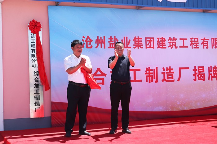暮春漸遠(yuǎn)初夏至,最美人間五月天。5月15日上午,滄州鹽業(yè)集團(tuán)建筑工程有限公司綜合加工制造廠揭牌儀式隆重舉行。黨委書記、董事長劉建軍出席儀式并與建筑工程公司經(jīng)理姬文革共同揭牌。
