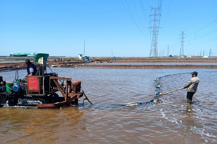 面對(duì)當(dāng)前產(chǎn)銷兩旺的大好形勢(shì),長(zhǎng)蘆公司凝心聚力精細(xì)現(xiàn)場(chǎng)管理,以嚴(yán)格的工藝標(biāo)準(zhǔn)抓產(chǎn)量、重質(zhì)量,鏖戰(zhàn)紅五月。春扒以來(lái),為有效提升機(jī)械效率和工作效率,長(zhǎng)蘆公司全面更新推廣了16臺(tái)套新型直吸式扒鹽機(jī)用于扒鹽作業(yè),并購(gòu)置了7臺(tái)機(jī)械性能更好的小型三輪汽車替換了之前的拖拉機(jī)。
