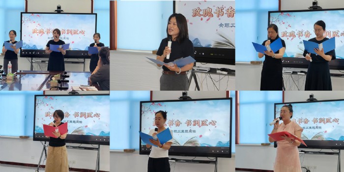 活動(dòng)分為兩個(gè)部分,首先是優(yōu)秀詩文作品朗誦,有經(jīng) 典誦讀作品《大寫的中國》《我喜歡出發(fā)》《美好的一天》 《我只愿面朝大海春暖花開》《梅嶺三章》 以及職工原創(chuàng) 作品《滄鹽魂》 等;讀書心得分享環(huán)節(jié),分享了《在書香 中遇到更好的自 己》 《句子星球》 《駱駝祥子》 《長安的 荔枝》 《人生幸好有快樂》 《遇見》 等讀書感悟,并解讀 書 中所呈現(xiàn)的情懷和積極樂觀的人生態(tài)度。
