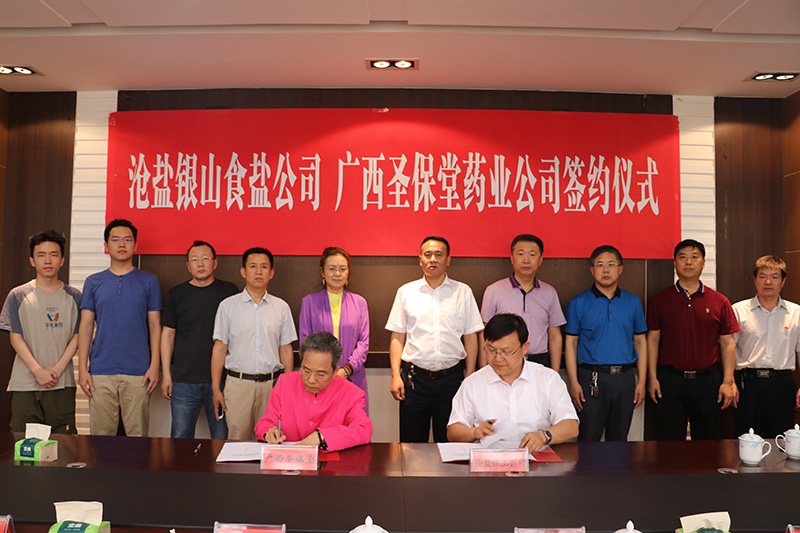 6月6日,滄鹽集團(tuán)銀山食鹽公司與廣西圣保堂藥業(yè)公司合作意向簽約儀式在集團(tuán)三樓會(huì)議室舉行,銀山食鹽公司經(jīng)理、法人代表高文生與廣西圣保堂董事長(zhǎng)黃愛(ài)強(qiáng)分別代表雙方簽署合作意向書。
