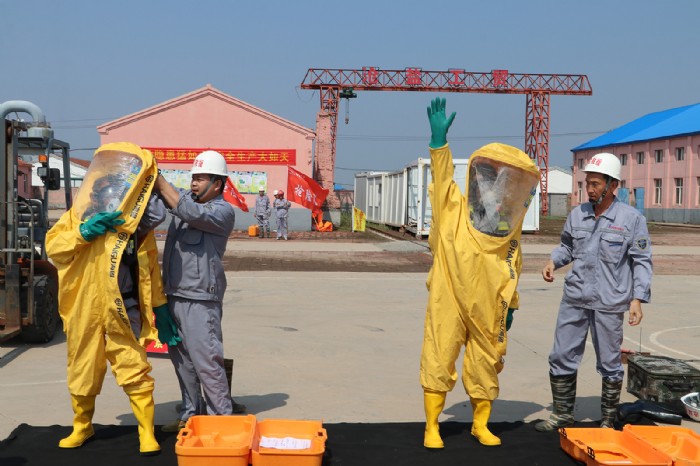 本次演練模擬了機械傷害、中暑、觸電、火災、氯氣泄漏等五類事故場景。演練前組織了空呼機、全封閉防化服穿戴等技能比武。通過演練和比武,使廣大職工了解并掌握了安全急救、消防滅火、安全疏散、傷員搜救、工藝處理、專業(yè)搶險搶修等常規(guī)操作,提高了消防搶險突擊隊快速正確、有效救援、應變處置能力,為有序高效開展應急救援、筑牢安全生產防線、完善集團公司事故應急管理體系奠定了堅實基礎。